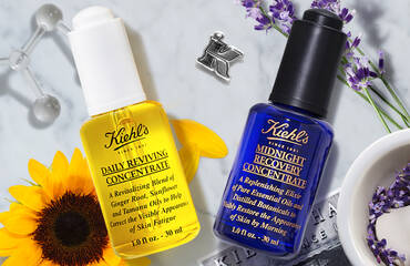 At night, reach for an oil that helps hydrate and repair your skin. We recommend Midnight Recovery Concentrate, which contains Squalane, Evening Primrose Oil, and aromatic Lavender Essential Oil. This Kiehl's customer favorite absorbs quickly and helps replenish the skin at night when it is most receptive to repairing itself from daily stressors. It also helps boost essential moisture, leaving skin looking firmer and smoother over time. We recommend applying several drops to clean, dry skin as part of your nighttime skincare routine. Let your nighttime moisturizer absorb fully, and follow with the facial oil for added moisture.